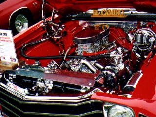 Diz's car features a "Smooth as Glass" red paint job and a detailed undercarriage. The engine is a venerable ZZ 502ci equipped with "Dual Quads". While inspecting this street machine at a show one might say to himself, this is a trailered car because of its cleanliness and lack of "road rash", WRONG. This ElCamino is not a show only car. Diz drives this car everywhere, including the most recent Hot Rod Power Tour from Arlington, TX to Green Bay, WI!! This spectacular SS most recently was awarded the "Sensational 70's Pick" at the 2005 Goodguys Heartland Nationals in Des Moines, IA.